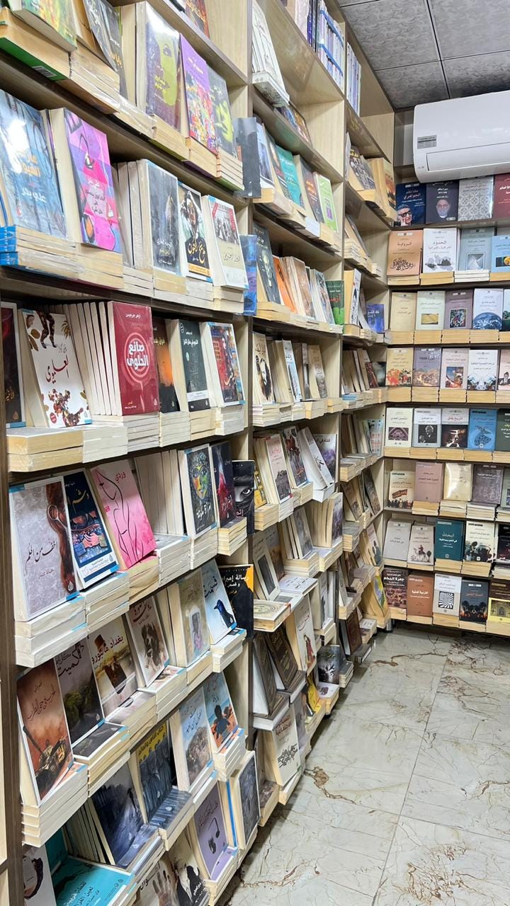 Most weeks, Ashour heads down to Al Farahidi Street, which now hosts a bookfair every Friday, much like the famed literary market on Al Mutannabi Street in Baghdad. He is inspired by the size of the crowds, as people browse stalls laden with books covering all manner of topics, including the inevitable counterfeit copies.