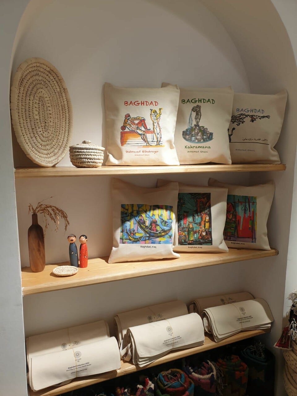 All the Hili products are drawn from Mesopotamian culture and heritage, but unlike the souvenirs typically found in Iraq, they are sleek and contemporary, more at home in a boutique than at a market stall. “I make deals with Iraqi artisans to create something special and unique for the Iraqi market,” Hashim says, pointing to a new line of tote bags featuring prints by famous Iraqi artists.
