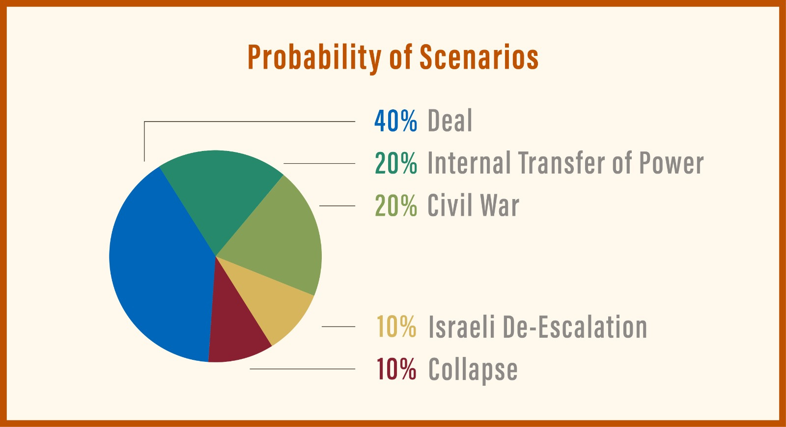 Below are five scenarios that outline where Iran might be headed, each with an estimated probability based on current dynamics and historical precedent.