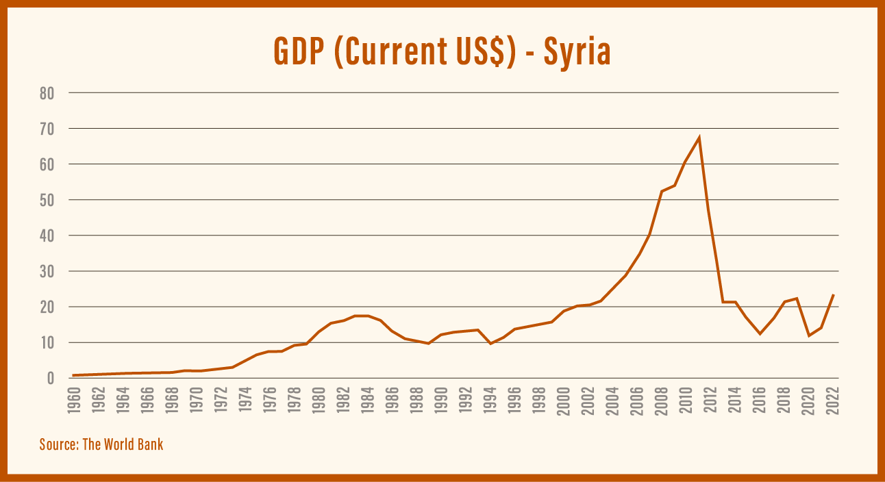 Sanctions on Syria aren’t new. They stretch back to 1979, when the United States designated Syria a state sponsor of terrorism, citing ties to Hezbollah in Lebanon. More were added in 2004 through the Syria Accountability and Lebanese Sovereignty Restoration Act. Yet even under these constraints, Syria’s economy grew—from $9.9 billion in 1979 to $67.5 billion in 2011. While growth was attainable, the distribution of income was sharply skewed, showing the impact of Assad’s nepotistic privatization that aggregated 60% to 80% of Syria’s economy in the hands of Assad and his regime.
