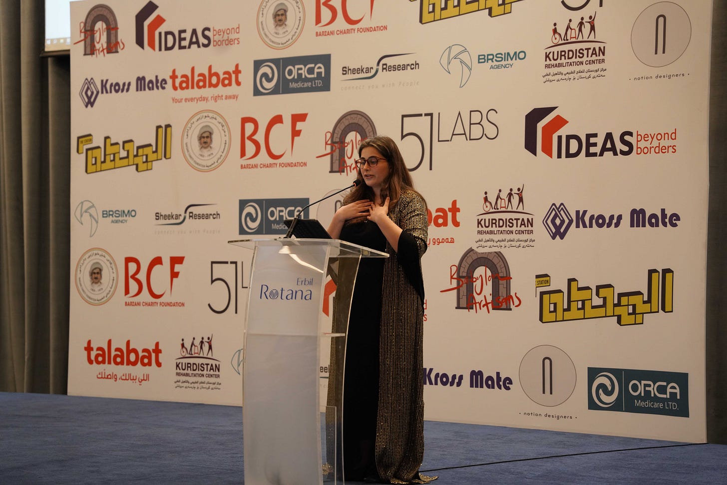 Then, the day before the event, one of the sponsors called to say their logo had the wrong branding on stage, where they were due to participate in a panel on embracing independence for small business owners. “They threatened to pull out,” Gawdan recalls. With just hours to go, she begged the printer to open their shop late at night so they could re-print the banners. Finding the venue was another challenge. Public spaces like parks require lengthy government approval, while private venues are expensive. In the end, she booked a hotel but next time she hopes to use the Erbil citadel, where a newly refurbished space is ideal for open-air events.