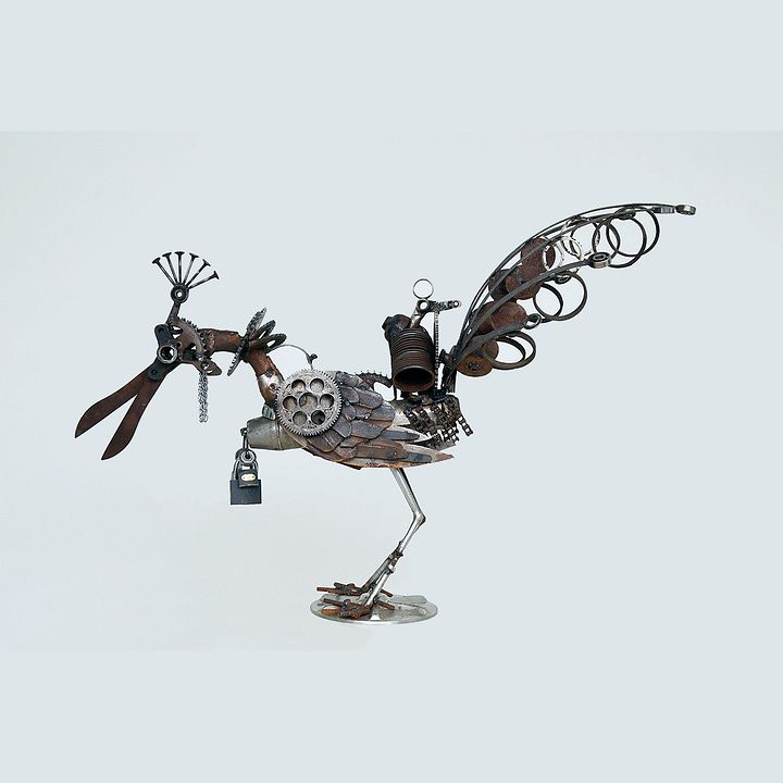 His work often draws on Persian mythology, updating the heroes of the Shahnameh (the epic of Persian kings) into contemporary contexts. His scrap-metal collection reflected the decline of certain bird species in the Middle East.