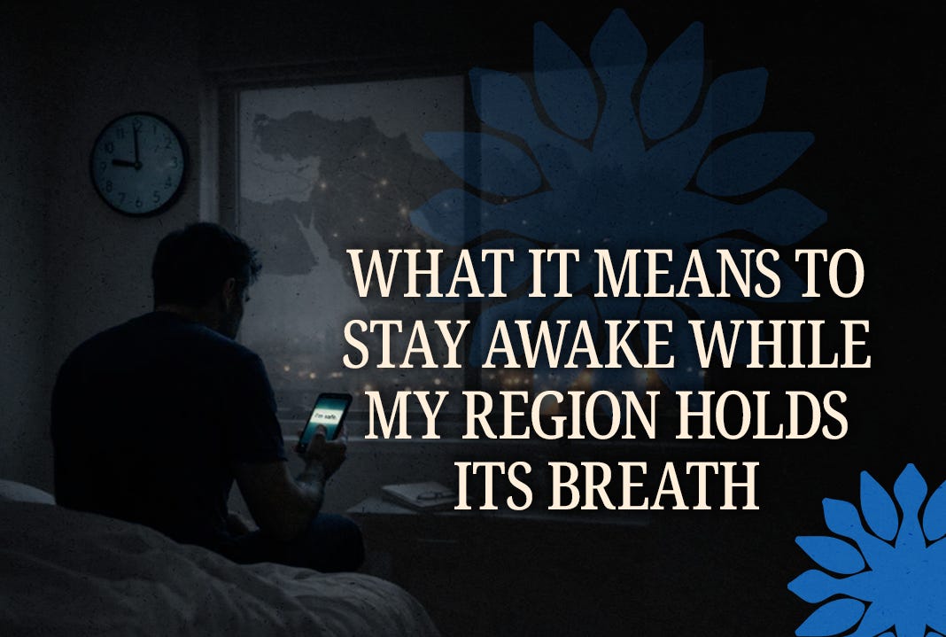 It is the kind that keeps you awake until nine in the morning, staring at the light breaking through the window, knowing you have not slept at all. Not because you were building something or celebrating. But because you were waiting—holding your breath as the rest of the world cheers on a war you know will have far-reaching implications for those you love… for the place you call home.
